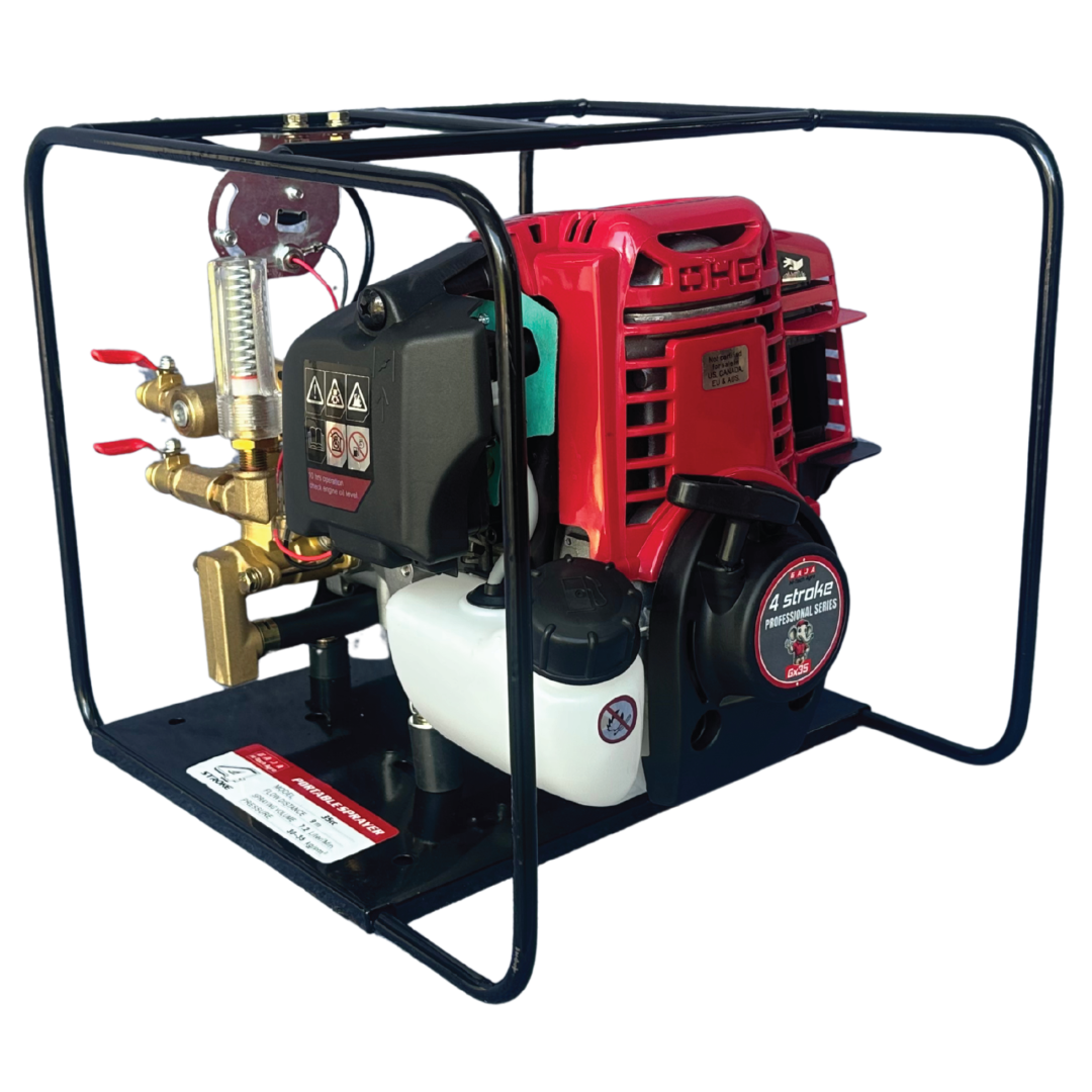 The PS-17 Portable Sprayer is a heavy-duty agricultural sprayer equipped with a GX50 4-stroke engine producing 50cc displacement. It features a high brass pump for strong spraying pressure in large farms and plantations.